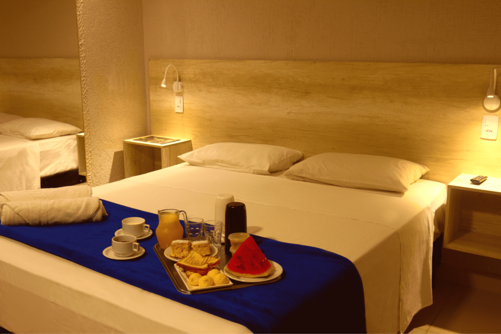 Comodidade, segurança e praticidade para uma estadia sem preocupações. Aqui, o seu dia começa do melhor jeito. O café da manhã é servido diariamente, já incluso na diária, preparado bem cedinho e reposto ao longo da manhã para que você aproveite com calma, organização e qualidade do início ao fim.